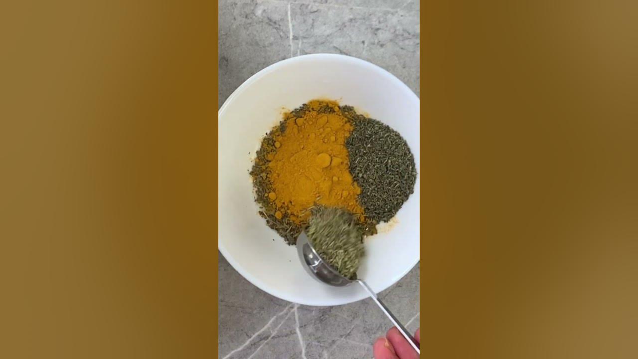 a condimentar con esto. En un bolsito vas a mezclar una cucharada de orégano, de cúrcuma, de tomillo
